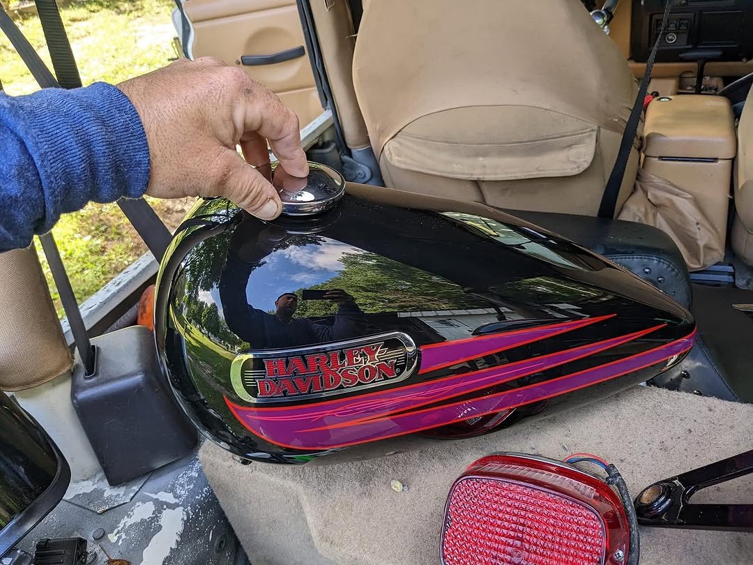 Stock original tins purple stripe of 96 BadBoy Springer (fuel tanks, front fender, rear fender